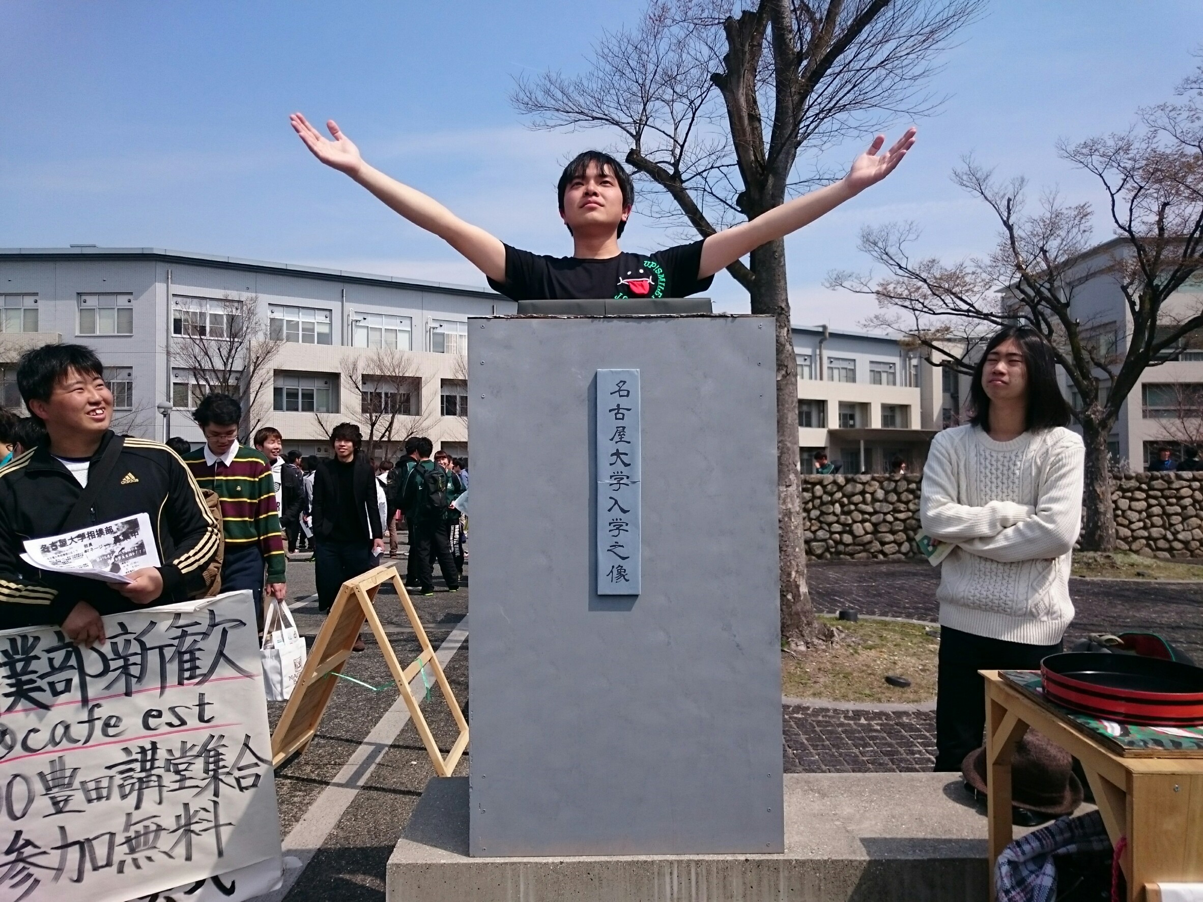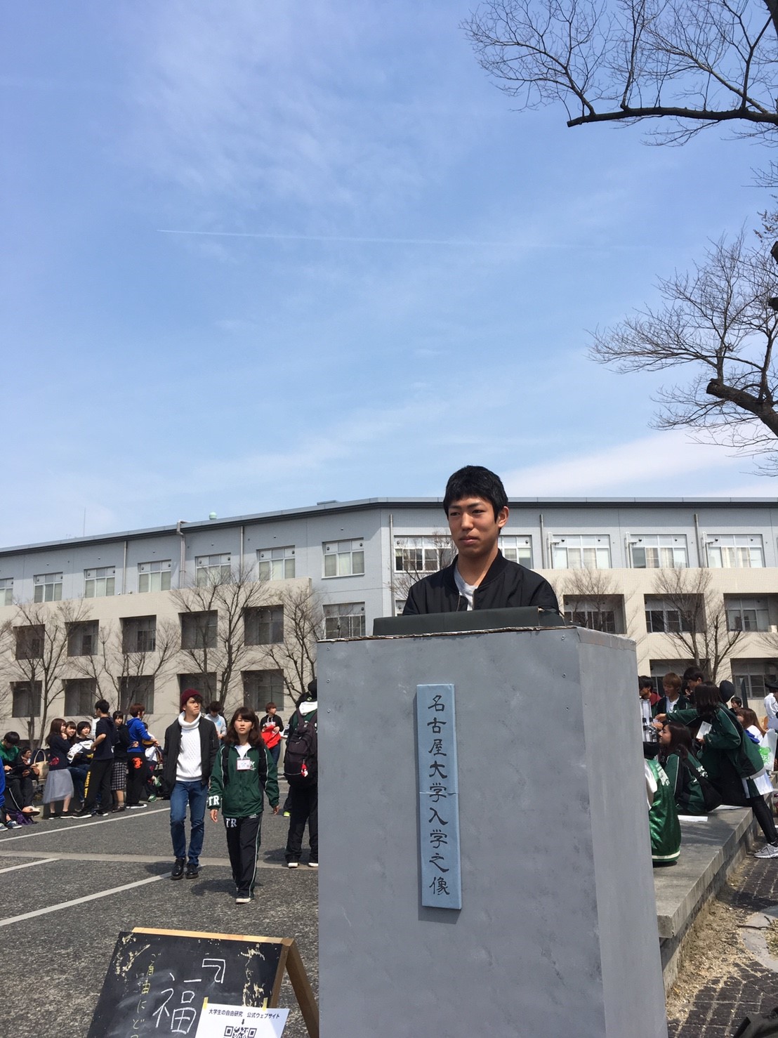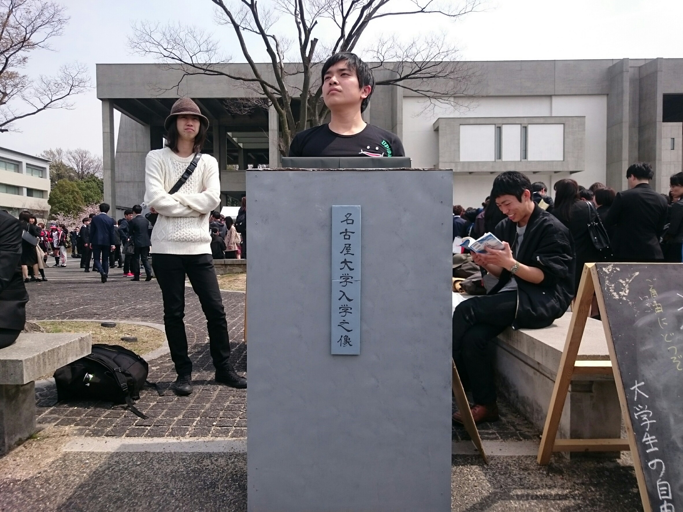 石像になるのは名大生のような優秀な人々の夢なのではないでしょうか。そんな夢のシミュレーションをすることは、新入生が明るい未来に希望を抱いている入学式がぴったりでしょう。