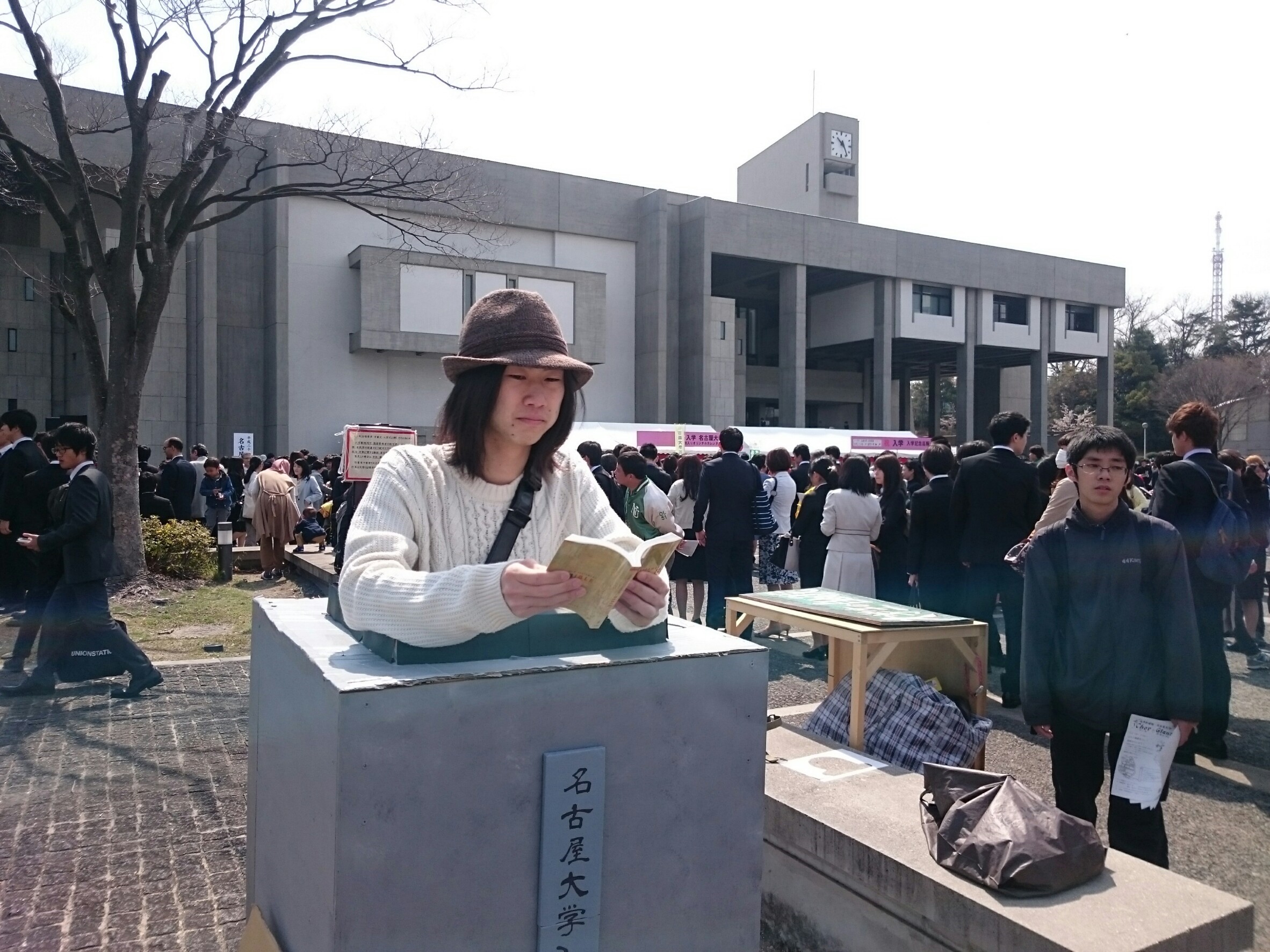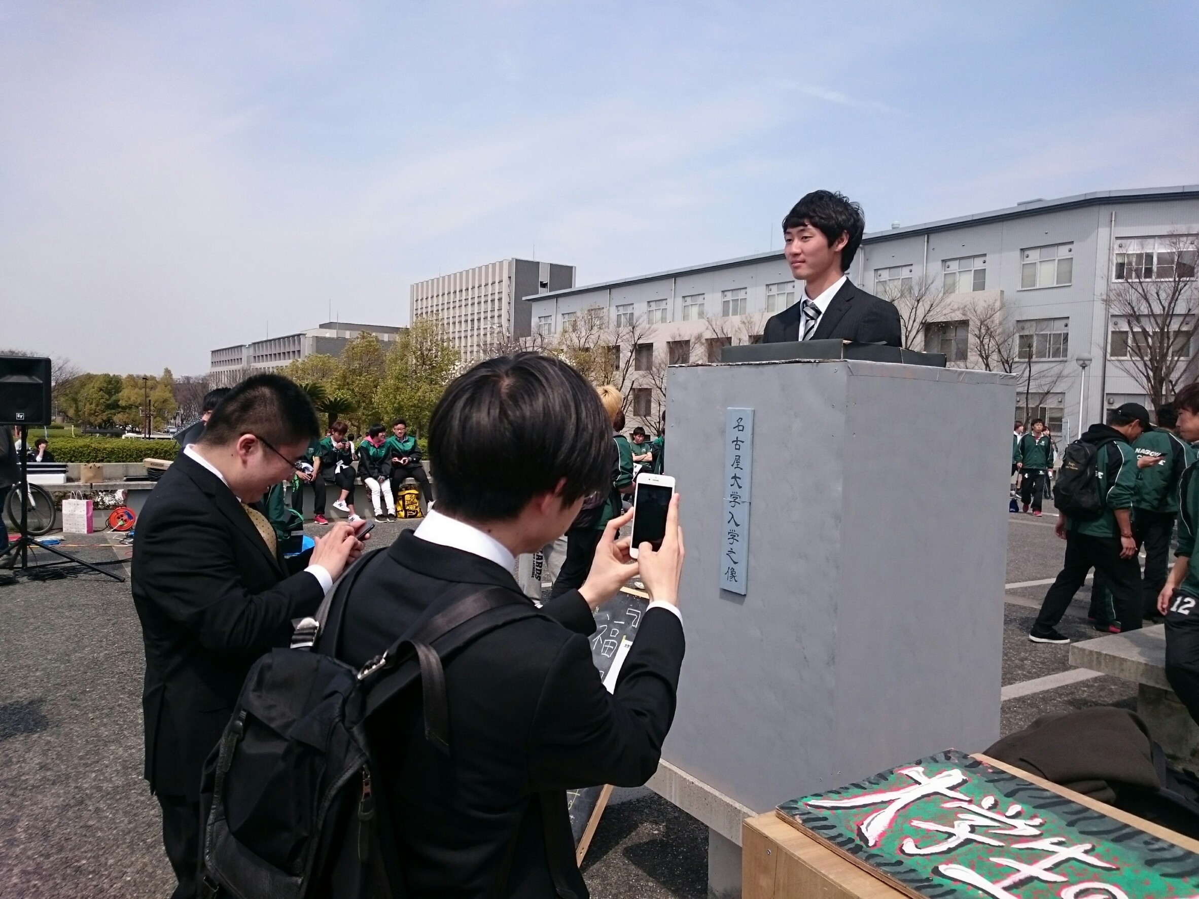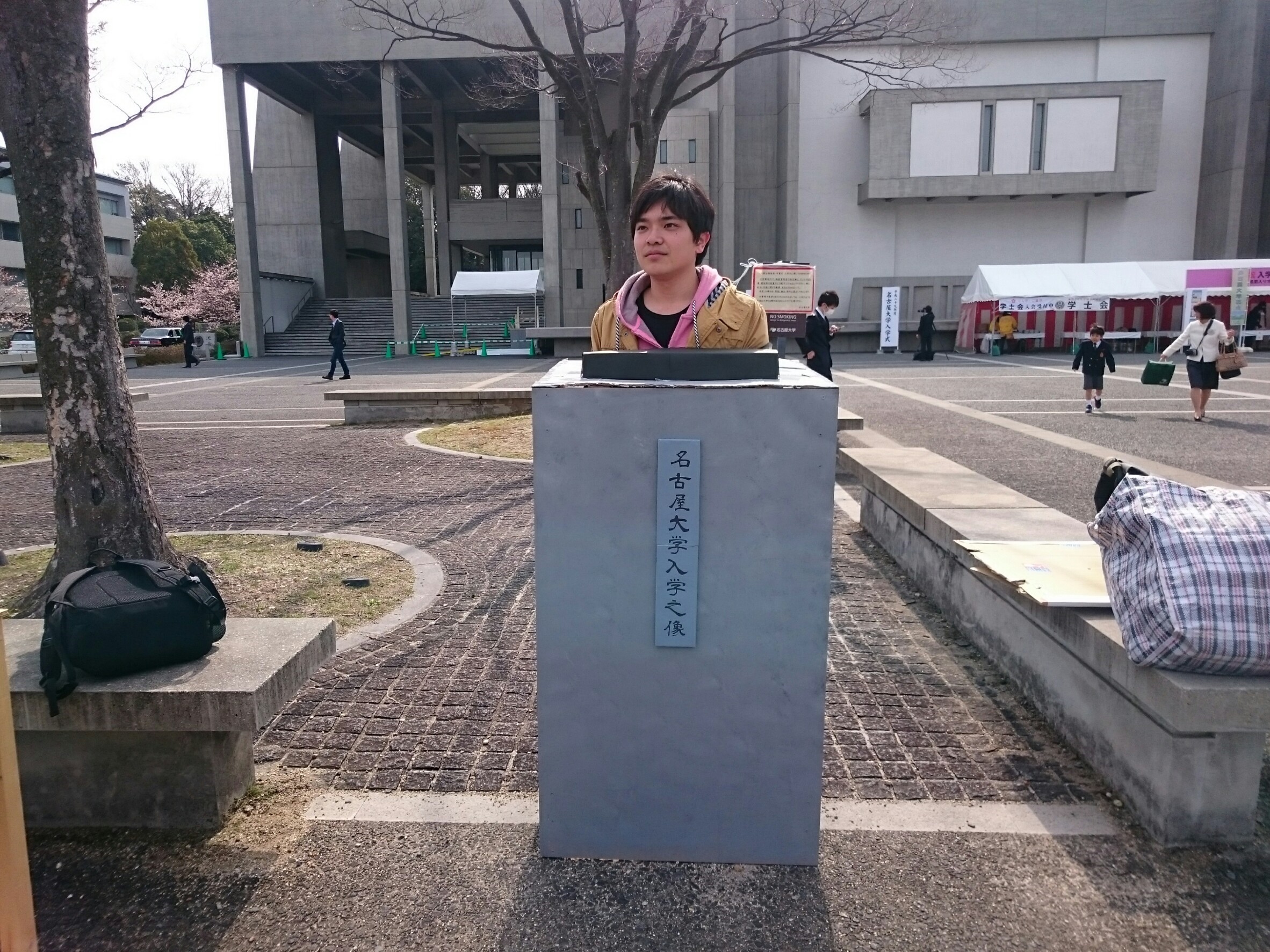 石像になるのは名大生のような優秀な人々の夢なのではないでしょうか。そんな夢のシミュレーションをすることは、新入生が明るい未来に希望を抱いている入学式がぴったりでしょう。