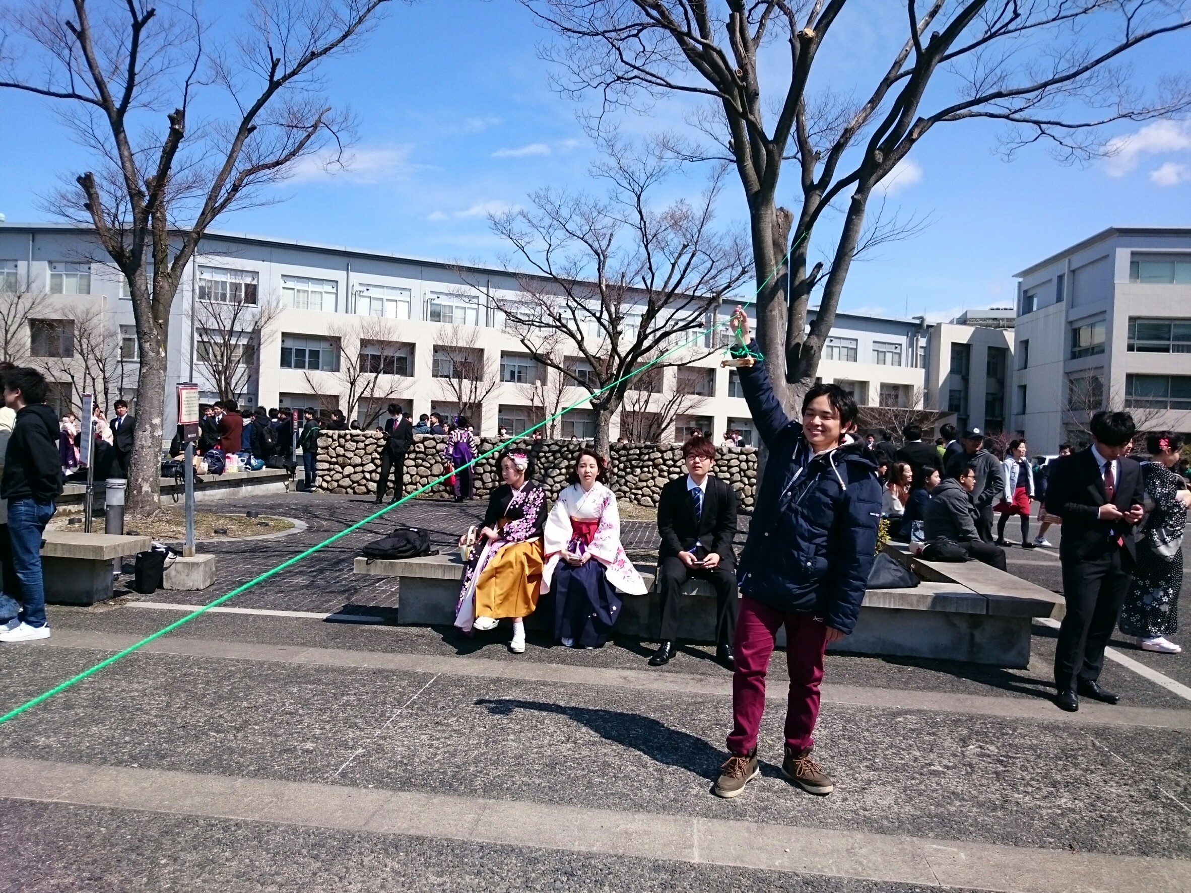 あとは単純に卒業式はうかれムードなので、余計なことをしても周りの反応があたたかいです。ハダカでビールかけをしている団体もいました。(すごい酒くさい)