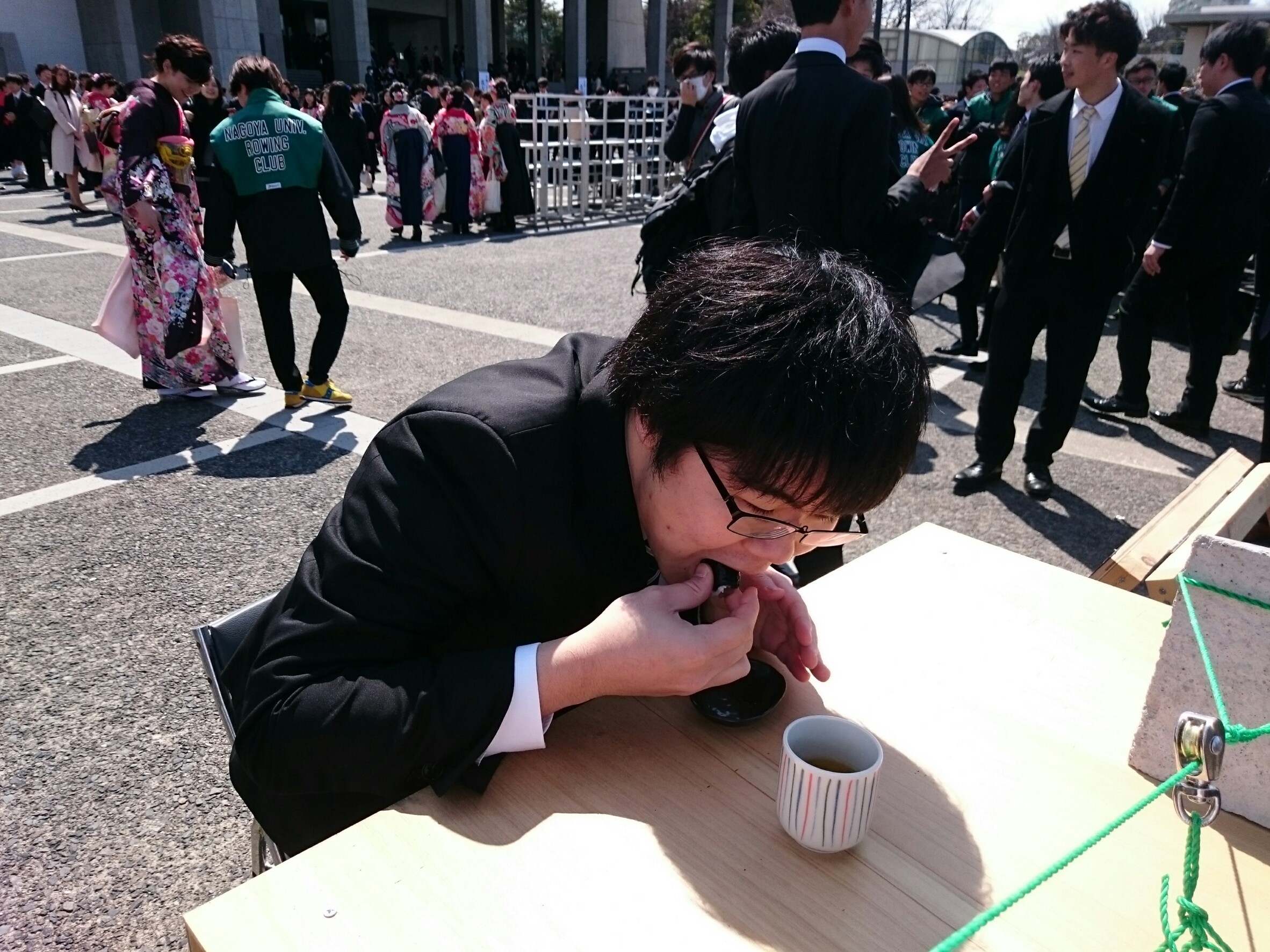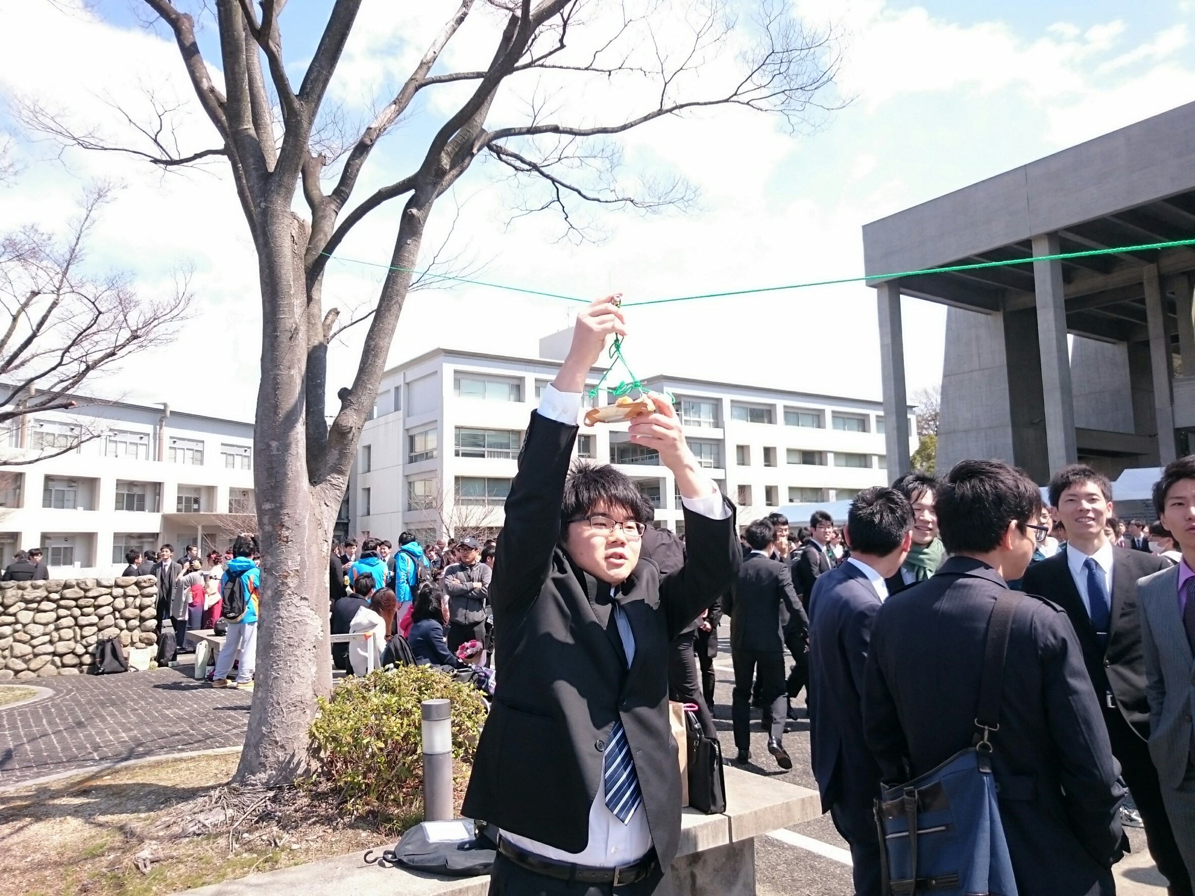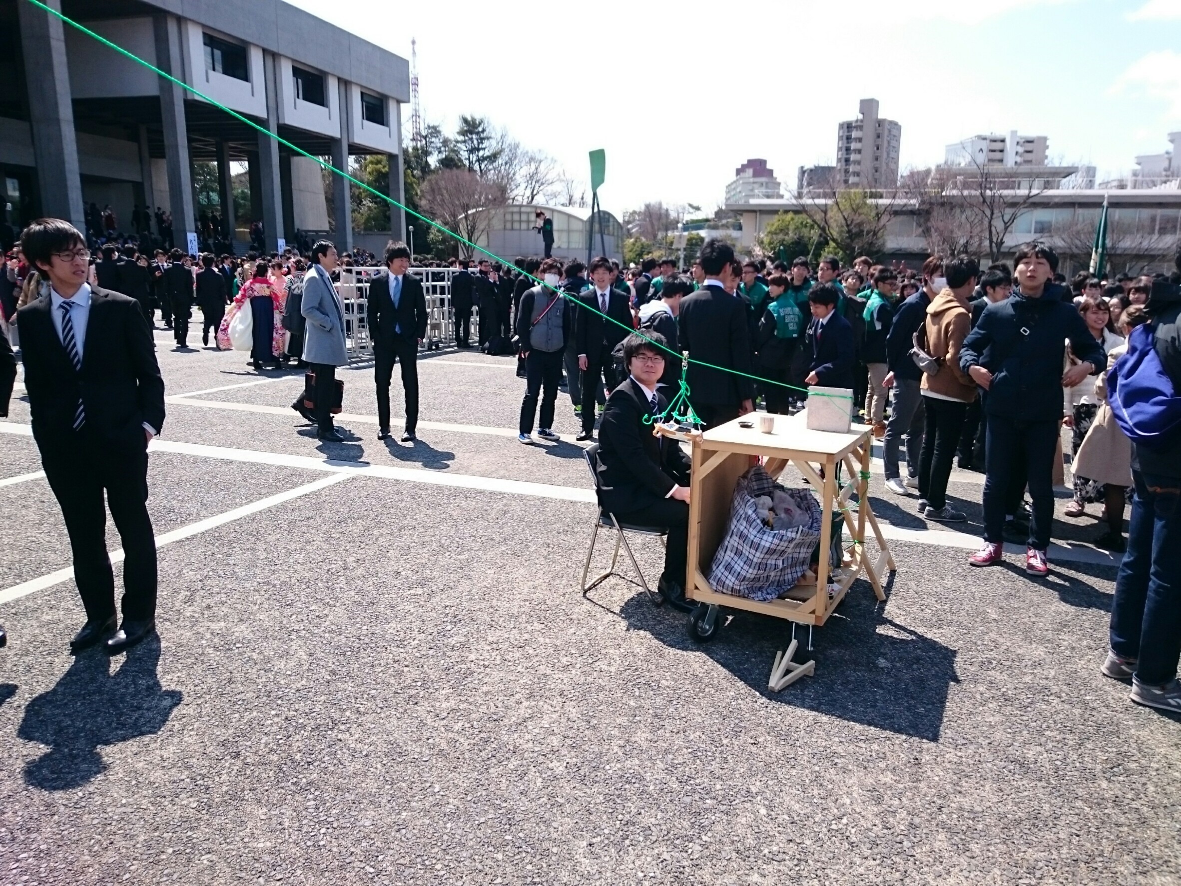 名大の卒業式に空飛ぶ寿司屋が出現