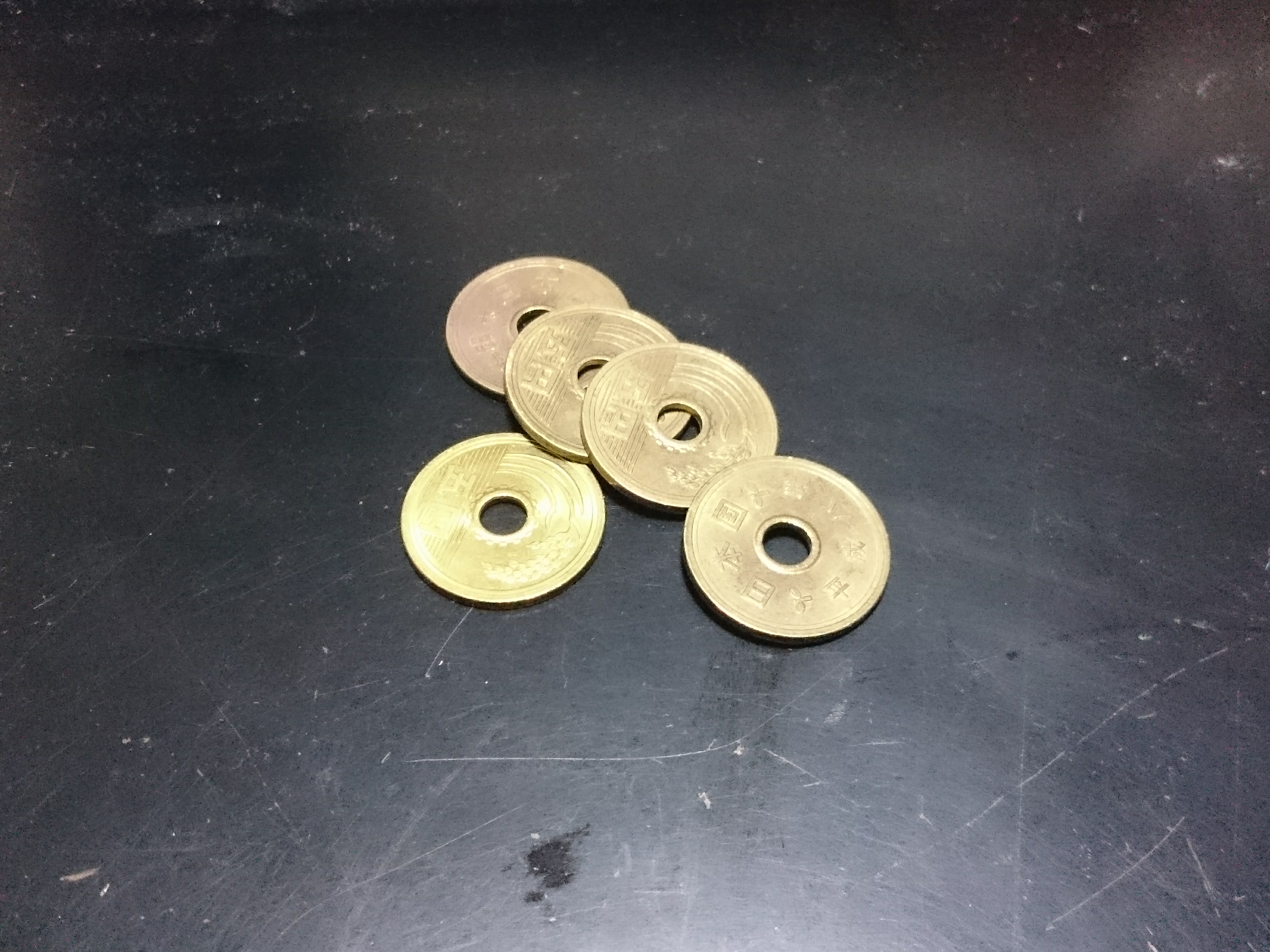 玉は玉でもこんどは価値がわかりやすいお金にした。その価値のたとえにうまい棒を出そうと思ったが、そうすると価値が低い気がしてしまうのでやめた。(5円玉はうまい棒の半分しかない!)