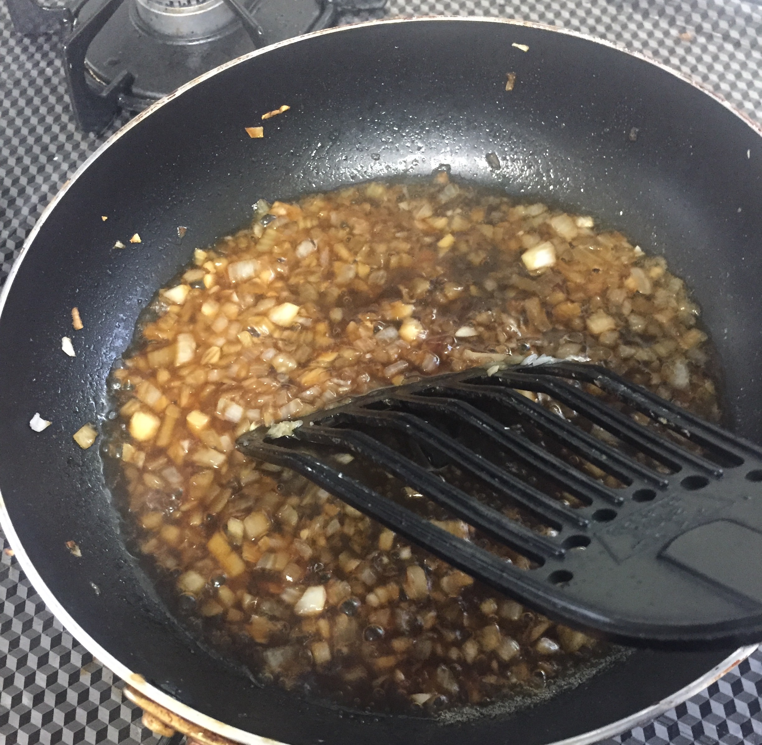 待ち時間の間に玉ねぎやら醤油やらを火にかけてお肉にかけるソースを作りました。