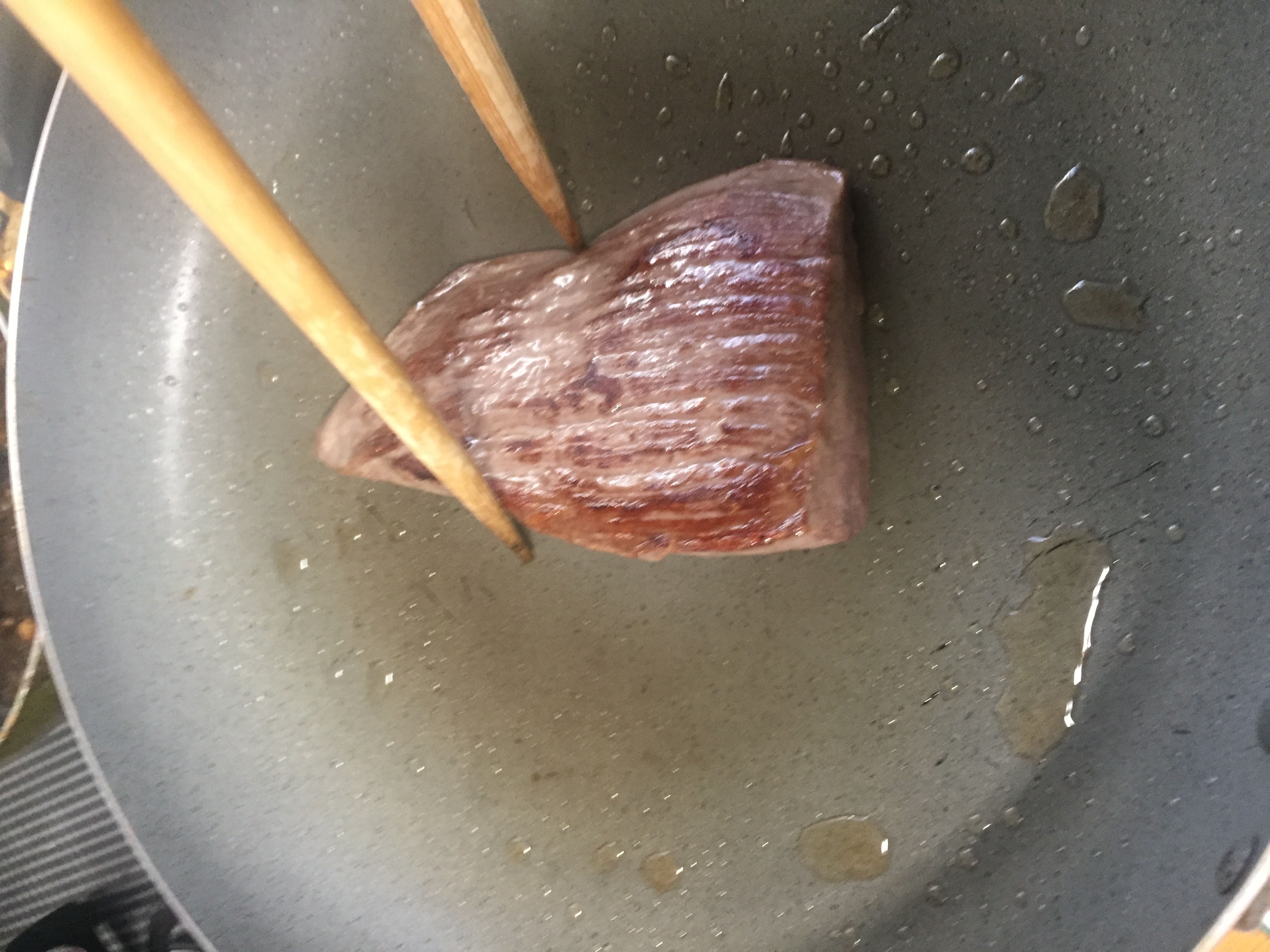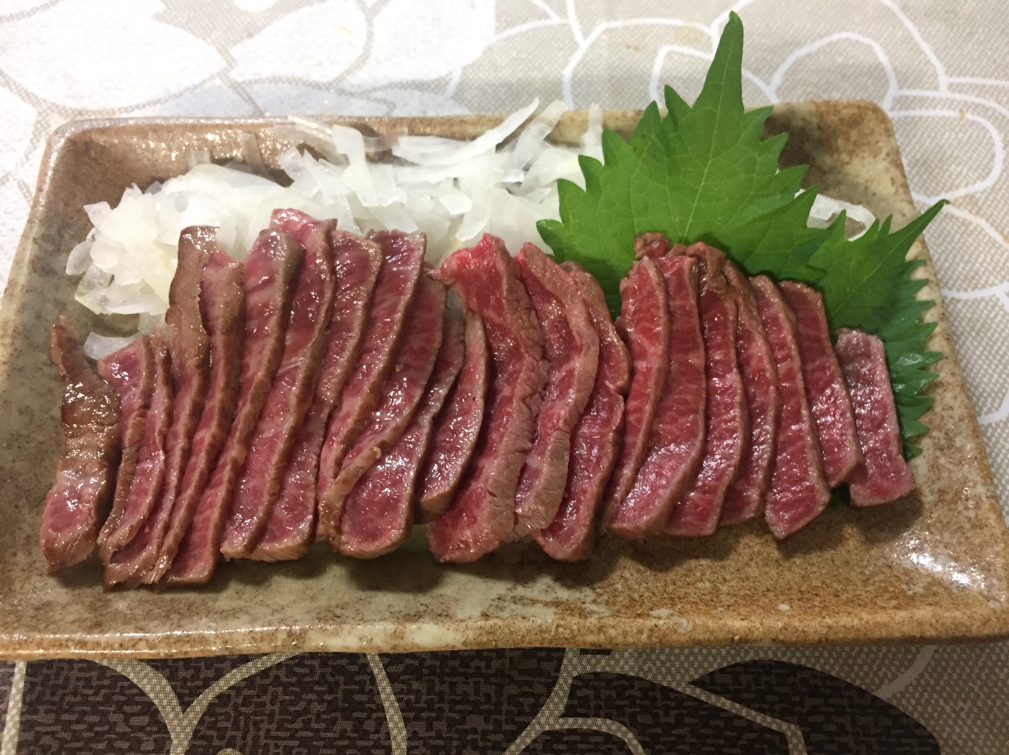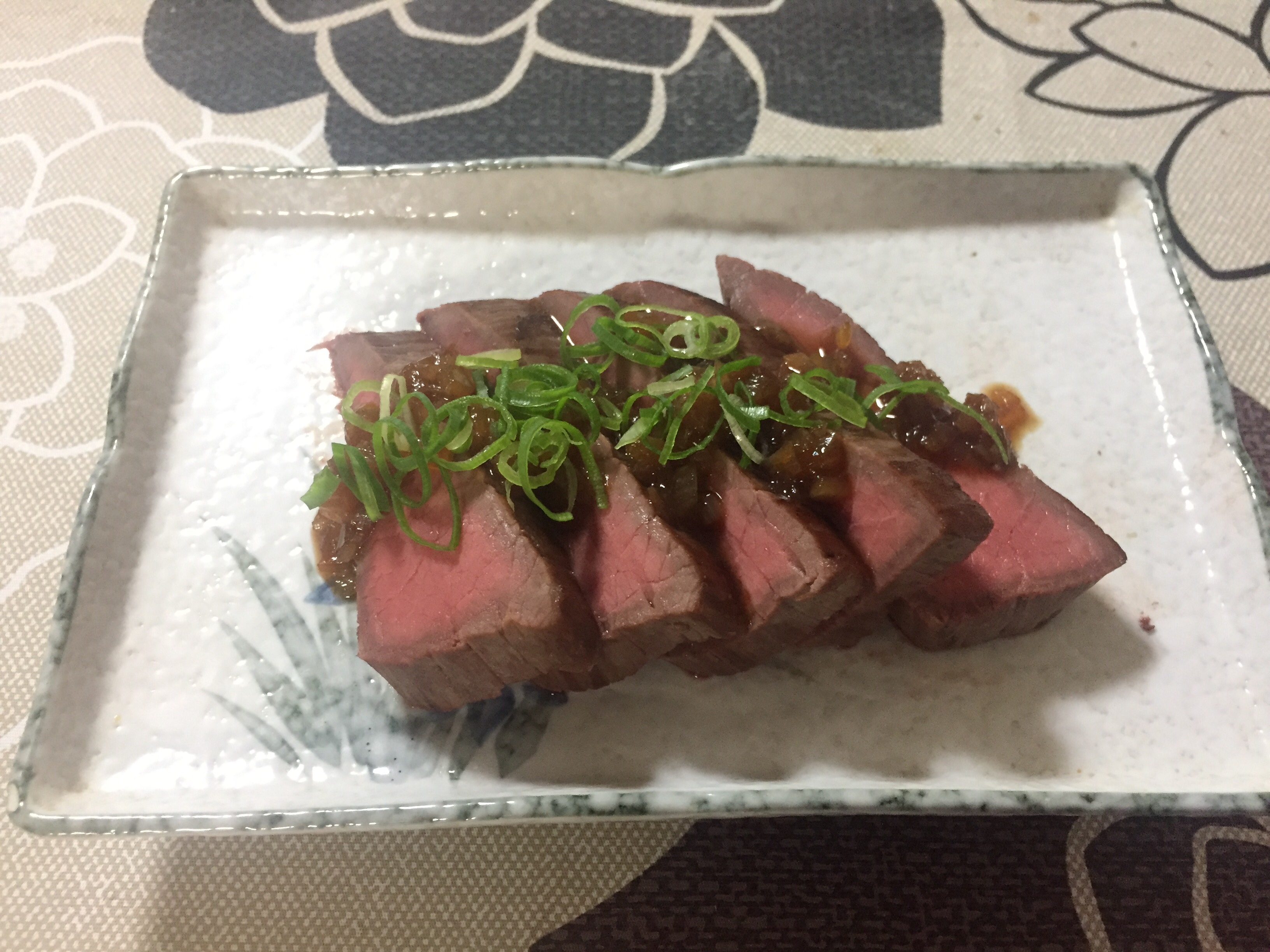 牛もも肉のたたきが完成しました。許せないくらい美味しそうです。