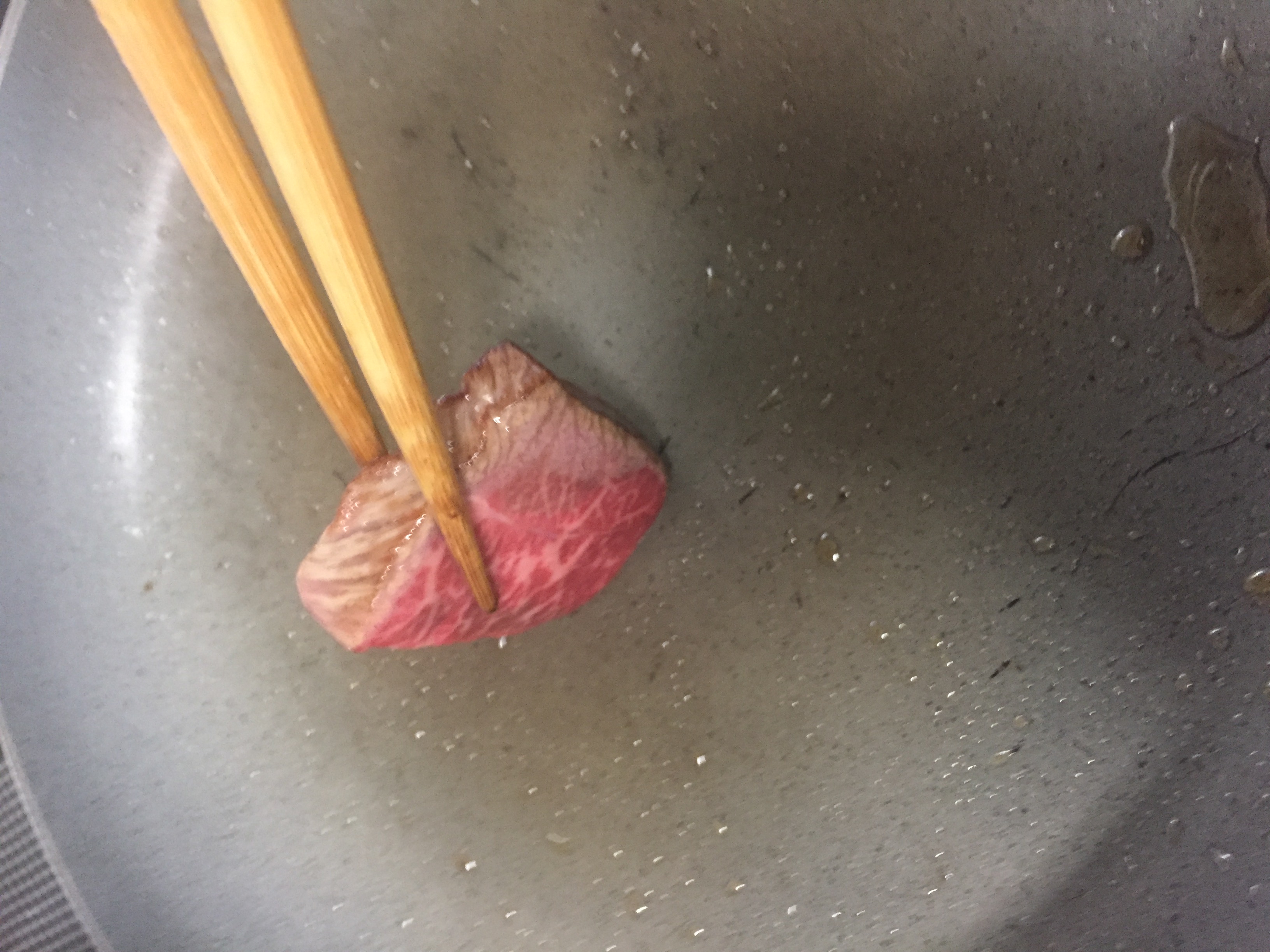 興奮冷めやらぬ中、黒毛和牛のほうも調理していきます。